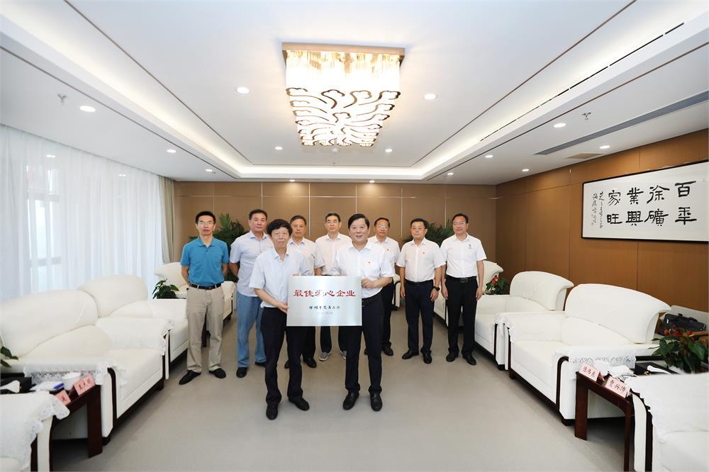 座谈会上,夏文达向徐矿集团赠予“最佳爱心企业”牌匾,表示感谢。