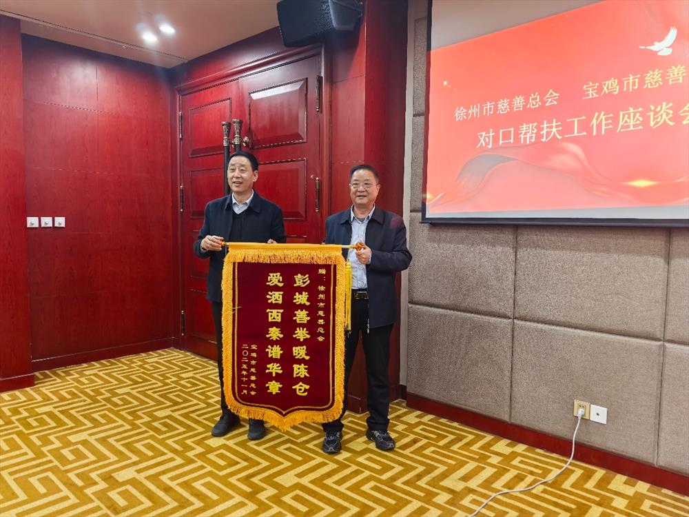 座谈会上,徐州市慈善总会2025年向宝鸡市捐赠120万元,其中向太白县、扶风县、千阳县、陇县、麟游县各对口慈善协会共捐赠50万元,支持县域慈善事业发展;向宝鸡市慈善总会捐赠70万元,用于统筹推进重点慈善项目。宝鸡市慈善总会会长李兴安向徐州市慈善总会赠送锦旗,以此表达徐州慈善同仁长期以来对宝鸡支持关切的衷心感谢。