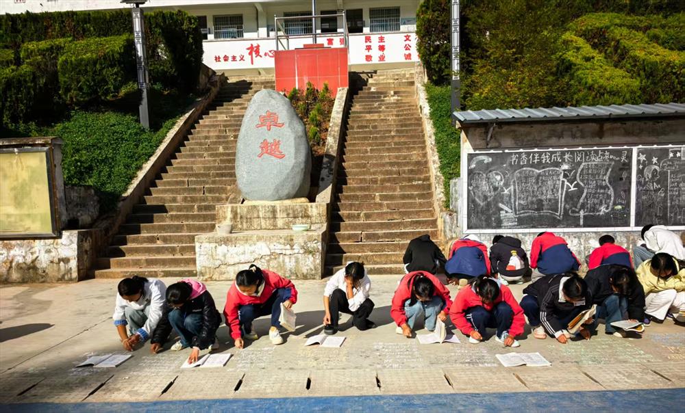 这些字迹或许会被下一场雨冲走,但在书写的过程中,知识已经深深印刻在孩子们心里。